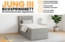 Das Boxspringbett JUNG 3 vereint modernes Design mit praktischer Funktionalität. Der seitlich aufklappbare Bettkasten bietet großzügigen Stauraum für Bettwäsche und Decken. Mit einem stabilen Bettgestell aus hochwertigen Holzwerkstoffen und einem Bezug aus weichem Veloursstoff ist es sowohl langlebig als auch pflegeleicht. Die Matratze mit Härtegrad H3 und der abnehmbare Topper sorgen für optimalen Schlafkomfort.