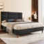 Polsterbett 140x200 cm mit gepolstertem Kopfteil, Leinenstoff Schwarz , Metallrahmen, stabil Bild 1