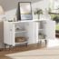 Dieses moderne Sideboard mit den Abmessungen 140 x 34 x 78 cm vereint elegantes Design und durchdachte Funktionalität. Die auffällige 3D-Bogenfront in Weiß sorgt für eine raffinierte Optik und passt sowohl zu modernen als auch zu skandinavischen Einrichtungen. Mit vier Türen und verstellbaren Einlegeböden bietet es flexiblen Stauraum für Geschirr, Bücher oder Dekorationsobjekte. Die Soft-Close-Scharnieren ermöglichen ein leises Schließen der Türen und erhöhen die Lebensdauer des Möbelstücks.