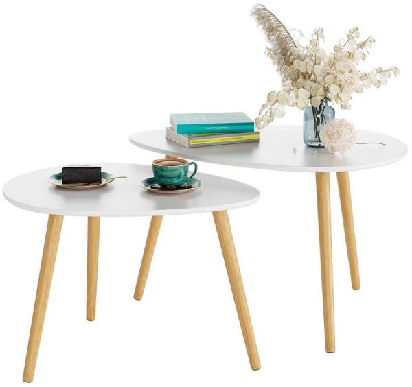 Homfa Couchtisch, 2er Set Beistelltisch Sofatisch Groß und Klein weiß Bild 1