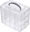 Praktische Sortierbox zur übersichtlichen und platzsparenden Aufbewahrung von Bastel-, Kreativ- und DIY-Materialien sowie Büro-Accessoires. Mit 3 Etagen und 17 variablen Fächern bietet sie ausreichend Platz für verschiedene Utensilien. Die Box hat die Maße 23,1 x 18,5 x 15,6 cm und besteht aus stabilem, transparentem Kunststoff, der einen schnellen Überblick über den Inhalt ermöglicht. Der Tragegriff im Deckel sorgt für einfachen Transport.