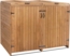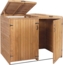 Zwischen den einzelnen Abteilen einer 2er-Mülltonnenverkleidung gibt es eine Trennung. Jedes Abteil ist für handelsübliche Mülltonnen mit einem Fassungsvermögen von 80 bis 240 Litern ausgelegt. Der Deckel ist mit einer Halterung ausgestattet, damit bleibt er offen stehen und erleichtert Ihnen das Befüllen der Mülltonnen. Beide Deckel sind außerdem mit einer Wind-Sicherung durch Ketten ausgestattet. Durch die vier Griffe wird Ihnen das Öffnen und Schließen der Deckel und Türen erleichtert. Beide Türen verfügen jeweils über zwei Riegelschlösser. Da die Rückwand verkleidet ist, kann der Mülltonnenschrank auch frei aufgestellt werden. Bei Holz handelt es sich um ein Naturprodukt. Wir empfehlen Ihnen dieses in regelmäßigen Abständen neu zu behandeln, um es vor Witterungseinflüssen zu schützen.