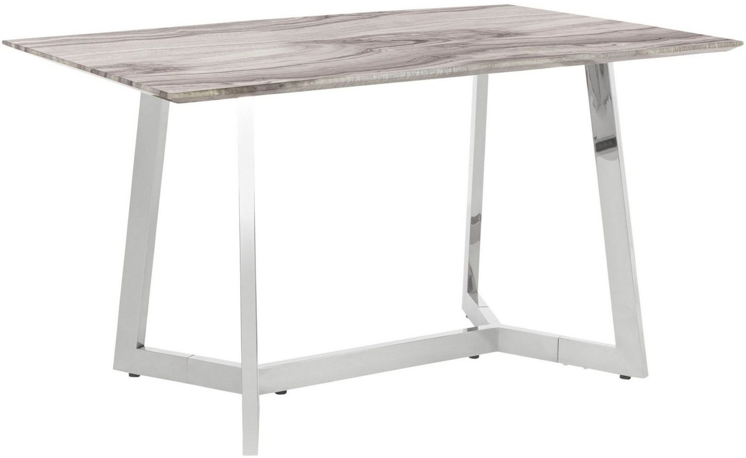 Der Esszimmertisch »Tiesto« begeistert durch sein modernes und zeitgenössisches Design in Hochglanzoptik. Die Tischplatte präsentiert sich in angesagter Marmoroptik und verfügt über eine pflegeleichte Oberfläche aus FSC®-zertifizierter MDF. Das kufenartige Gestell strahlt in glänzender Chromoptik und stellt einen ansprechenden Kontrast zur hochglänzenden Tischplatte dar. Erhältlich in drei unterschiedlichen Tischbreiten ist für jedes Esszimmer das passende Format vorhanden. Setzen Sie mit dem Esstisch stilvolle Akzente und verleihen Sie Ihrer Einrichtung eine luxuriöse Note. Entdecken Sie weitere Modelle aus der »Tiesto« Serie.