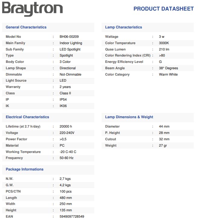 Unser Braytron LED Minispot 3W Einbauspot 3000K inkl. drei Blenden ist die perfekte Wahl, um helle Akzente zu setzen. Mit 3 Watt Leistung, 210 Lumen und einer Farbtemperatur von 3000K oder 4000K bietet er effiziente Beleuchtung. Der Spot ist einfach zu installieren, benötigt keinen Trafo und ist dank IP54 Schutzart robust gegen Umwelteinflüsse.