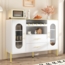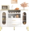Sideboard, Glasfronten und Weinregal, Verstellbarer Fuß, Viel Stauraum, Modernes Design, MDF, Weiß Bild 1