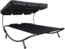 Die XXL Doppelsonnenliege mit Dach in Schwarz bietet Platz für 2 Personen und eine Belastbarkeit von bis zu 260 kg. Sie verfügt über einen stabilen Stahlrahmen und einen strapazierfähigen Stoff aus 600D Oxford, ideal für Garten, Balkon oder Terrasse. Das neigbare Sonnendach und die 2 Kopfkissen sorgen für zusätzlichen Komfort und Entspannung.