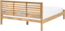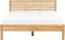 Schönes Doppelbett CARNAC in einem warmen hellbraunen Kiefernholz. Mit einem stabilen, fest integrierten Lattenrost und einer komfortablen Liegefläche von 160x200 cm bietet es optimalen Liegekomfort. Das elegante Design mit horizontalen Holzleisten im Kopfteil und einer zusätzlichen Leiste am Fußteil verleiht dem Bett einen modernen, skandinavischen Stil.