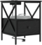 Dieser Nachttisch aus schwarzer Eiche kombiniert moderne Eleganz mit praktischen Funktionen. Mit kompakten Abmessungen von 41,5 x 40,5 x 55 cm bietet er ausreichend Stauraum durch eine Schublade und Regale. Die strukturierte Oberfläche aus Holzwerkstoff sorgt für einen ansprechenden haptischen Reiz und ist leicht zu reinigen. Stabile Stahlbeine verleihen dem Möbelstück nicht nur Stärke, sondern auch einen industriellen Touch. Ideal für kleinere Schlafzimmer, bringt er Stil und Funktionalität in Ihr Zuhause.