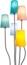 - Fünf farbenfrohe Lampenschirme in Gelb, Rosa, Blau, Türkis und Oliv