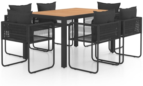 Die vidaXL 7-tlg. Garten-Essgruppe aus PVC-Rattan in Schwarz und Braun ist ideal für Garten, Patio oder Terrasse. Sie besteht aus einem stabilen Tisch mit Aluminiumrahmen und WPC-Tischplatte sowie sechs komfortablen Stühlen mit PVC-Rattan und Stahlgestell. Die Gruppe ist leicht zu reinigen und für den Außenbereich geeignet. Rückenkissen sorgen für zusätzlichen Komfort.