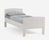 Stabiles Massivholz-Einzelbett in Buche weiß lackiert, ideal für Senioren und motorisch verstellbare Lattenroste. Mit einer Liegefläche von 100 x 190 cm bietet es optimalen Komfort. Der Bettrahmen ist robust und verfügt über eine 4-fach verstellbare Einlegetiefe. Die Maße umfassen ein Kopfteil von 90 cm Höhe und ein Fußteil von 75 cm Höhe, während die Bettseiten eine Höhe von 21 cm aufweisen.