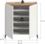Garderobe mit System: Schuhkommode Drive in weiß und Abs. Artisan Oak Nb. mit 2 Türen, 4 Einlegeböden, 5 geschlossene Fächer und Platz für ca. 18 Paar Schuhe. Funktionalität: Die Schuhkommode bietet eine Vielzahl von Funktionen und Möglichkeiten zur Aufbewahrung von Kleidung, Schuhen und anderen Accessoires. Ideal für Flure, Eingangsbereiche oder auch als funktionale Lösung in Wohnzimmern oder Schlafzimmern. Zeitloses Design: Unsere Garderobenmöbel sind zeitlos, modern und pflegeleicht. Die einfache Montage und die pflegeleichte Oberfläche sorgen für eine unkomplizierte Handhabung und langlebige Qualität. Nachhaltige Produktion: Zertifiziert durch FSC stehen wir für verantwortungsvolle Waldwirtschaft. Alle Möbel entsprechen den Anforderungen des Produktsicherheitsgesetzes. Hinweise: Hochwertige Materialien garantieren Langlebigkeit. Die strapazierfähigen Oberflächen sind leicht zu reinigen. Lieferung erfolgt zerlegt, ist teilweilse in mehreren Paketen verpackt und ohne Dekorationsartikel.