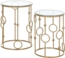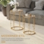 Der HOMCOM Couchtisch im 2er-Set vereint stilvolles Design und Funktionalität. Mit einem luxuriösen goldfarbenen Metallrahmen im Reifen- und Kugeldesign und robusten Tischplatten aus gehärtetem Sicherheitsglas sind diese Tische sowohl ein Blickfang als auch praktisch. Der kleinere Tisch lässt sich platzsparend in den größeren schieben, ideal für Wohnzimmer, Schlafzimmer oder Flur.