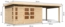 Seitliches Anbaudach naturbelassen mit 320 cm Breite über die gesamte Haustiefe, als Stauraum/Unterstand oder überdachter Sitzplatz.