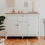 - Material: Front und Korpus aus weißem Melamin, Oberboden mit Artisan Eiche Dekor