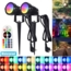 Der LMaxhome LED Gartenstrahler bietet eine vielseitige Gartenbeleuchtung mit RGB-Farben und Warmweiß. Mit einer Wattleistung von 6 W und einem Lichtstrom von 300-600 lm sorgt er für eine ansprechende Ausleuchtung. Der Strahler ist IP65 wasserdicht und somit ideal für den Außenbereich geeignet. Dank der Fernbedienung können Sie zwischen 16 Farben und 4 Modi wählen. Der Abstrahlwinkel von 90° und die integrierte Memory-Funktion runden das Produkt ab.