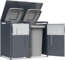 Westmann Tonus 2 | Metall Mülltonnenbox 2er | 2x240 L | Anthrazit Modernes Design und hoher Nutzerkomfort — die Mülltonnenbox Tonus 2 von Westmann ist ein zeitloser Klassiker unter den Mülltonnenboxen und sorgt für Ordnung auf deinem Grundstück. Tonus von Westmann — die moderne Mülltonnenbox Kaum ein Gegenstand des täglichen Gebrauchs ist so essenziell und gleichzeitig optisch so unbeliebt wie die Mülltonne. Mit der Mülltonnenbox Tonus von Westmann lösen wir dieses Problem im Handumdrehen! Tonus punktet mit einem geradlinigen Farbmix: Helles und dunkles Grau sorgen für einen unkomplizierten und zeitgenössischen Look. Um deine Mülltonne zu befüllen, öffnest du einfach den Deckel der Mülltonnenbox. Dieser ist via Seilhalterung am Deckel der Mülltonne befestigt. Die am Boxendeckel angebrachten Gasdruckfedern verhindern ein unkontrolliertes Zufallen des Deckels — das Befüllen der Mülltonne ist somit problemlos und ohne Verletzungsrisiko möglich. Dank leichtgängiger Fronttür lässt sich die Tonne mühelos in die Mülltonnenbox hineinschieben. Highlights auf einen Blick: * Platz für 2 Mülltonnen je 60 L, 120 L oder 240 L * Robuste Konstruktion: Rahmen & Verkleidung aus verzinktem Stahl + Pulverbeschichtung Türrahmen aus Edelstahl * Zeitloses Design: Fronten in 2 Graustufen * Praktische Handhabung: Mülltonnendeckel ist am Deckel der Mülltonnenbox befestigt * Gasdruckfedern am Deckel: einfaches Befüllen der Mülltonne ohne unkontrolliertes Zufallen * Magnetischer Türanschlag: unkompliziertes Schließen der Tür Schutz vor Sonne und Ungeziefer! Neben der sichtbaren Aufwertung deiner Mülltonnen schützt die Mülltonnenbox auch vor starker Sonneneinstrahlung und beugt somit intensiver Geruchsentwicklung vor. Außerdem erschwerst du Mäusen, Ratten und Co. den Zugang zu deinen Abfällen und sorgst so für ein hygienischeres Umfeld. Hinweis: Bitte befestige deine Mülltonnenbox nach korrekter Ausrichtung gemäß der Verankerungspunkte von Grundrahmen A auf festem Untergrund. Die Mülltonnenbox Tonus 2 von Westmann ist ein vielseitiger Allrounder und der dekorative Hingucker für Haus und Garten!