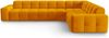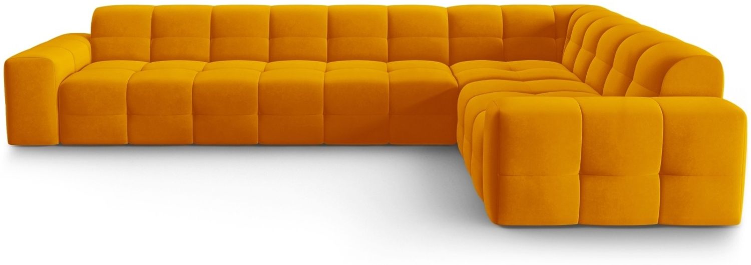 Das Micadoni 6-Sitzer Samtstoff Ecke rechts Sofa Kendal in Orange mit Beinfarbe Black Beech Wood überzeugt durch markante Steppungen und Ziernähte. Die geschwungenen Sitz-, Rücken- und Armlehnen sowie der Sockel bieten höchsten Sitzkomfort und laden zum Entspannen ein. Mit seinem avantgardistischen Design und der ansprechenden Gestaltung von allen Seiten ist es der ideale Blickfang für Ihr Zuhause.