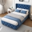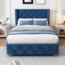 Dieses elegante Polsterbett in Blau mit den Maßen 90 x 200 cm bietet Ihnen nicht nur einen hohen Schlafkomfort, sondern auch eine ansprechende Optik. Der Bezug aus hochwertigem Samt sorgt für eine natürliche und pflegeleichte Textur. Raffinierte Details wie die Knopfpolsterung und die Nietenverzierungen am Kopfteil verleihen dem Bett eine besondere Eleganz. Robuste Holzbeine garantieren Stabilität und Haltbarkeit.