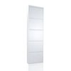 Ausführung mit drei / vier / fünf Klappen Aus hochwertigem Metall, lackiert Platz für ca. sechs / acht / zehn Paar Schuhe Bis max. Schuhgröße 44 Ideal für kleine/schmale Räume Wird montiert geliefert An der Wand montierbar, inkl. Dübel und Schrauben