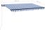 Die vidaXL manuell einziehbare Markise in Blau und Weiß mit den Maßen 400 x 350 cm bietet Ihnen einen kühlen und angenehmen Platz im Freien. Das Gestell aus rostfreiem, pulverbeschichtetem Aluminium ist leicht und stabil. Das UV- und wasserbeständige Polyester-Gewebe mit PU-Beschichtung sorgt für Langlebigkeit. Die Markise lässt sich mühelos mit der Handkurbel bedienen und ist in Winkel und Höhe anpassbar.
