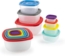 GOURMETmaxx Frischhaltedosen 28-tlg. mehrfarbig inkl. Deckel bieten eine optimale Lösung zur Aufbewahrung Ihrer Lebensmittel. Die luftdichten Dosen sorgen für langanhaltende Frische und verhindern unerwünschte Gerüche. Mit farbigen Deckeln zur einfachen Identifizierung der Größen sind sie ideal für Snacks und Mahlzeiten. Die Dosen sind stapelbar und ermöglichen eine platzsparende Aufbewahrung. Zudem sind sie spülmaschinen- und gefriergeeignet, was das Einfrieren von Speisen erleichtert.