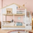 Das Merax Etagenbett ist ein kreatives Hochbett im Holzhaus-Design, das Sicherheit und Komfort für Kinder bietet. Mit zwei Einzelbetten (90x200 cm) und einem praktischen Ausziehbett (90x190 cm) ist es ideal für Familien mit mehreren Kindern. Der versteckte Stauraum unter der Treppe sorgt für Ordnung im Kinderzimmer. Hergestellt aus hochwertigem Kiefernholz und MDF, bietet es eine Belastbarkeit von bis zu 120 kg.