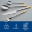 Das Villeroy & Boch 'Ella' Tafelbesteck 30-teilig vereint elegantes Design mit hochwertiger Verarbeitung. Hergestellt aus langlebigem 18/10 Edelstahl und teilweise mit Feingold veredelt, bietet es eine exklusive Note. Das Set umfasst 6 Tafellöffel, 6 Tafelgabeln, 6 Tafelmesser, 6 Kaffeelöffel und 6 Kuchengabeln. Die spülmaschinenfeste Eigenschaft sorgt für einfache Reinigung, während die praktische Leerkassette eine sichere Aufbewahrung ermöglicht.