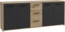 Prägnantes und modernes Sideboard mit 4 Türen und 4 Schubladen, ideal für Ihr Wohn- oder Schlafzimmer. Das Sideboard in Artisan Eiche Holzdekor mit Schwarz bietet viel Stauraum und überzeugt durch seine pflegeleichte Oberfläche aus robustem Holzwerkstoff. Mit einer Breite von 179 cm, einer Höhe von 74,1 cm und einer Tiefe von 42 cm fügt es sich harmonisch in verschiedene Einrichtungsstile ein und setzt gleichzeitig stilvolle Akzente.