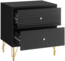 Entdecken Sie den Nachttisch LUREO in elegantem Schwarz, der mit zwei praktischen Schubladen ausgestattet ist. Hergestellt aus robustem Holzspan und mit einem melaminbeschichteten Finish, vereint er Funktionalität und modernes Design. Die Metallfüße sorgen für Stabilität, während die maximale Traglast von 75 kg eine vielseitige Nutzung ermöglicht. Ideal für Ihr Schlafzimmer oder Wohnzimmer.