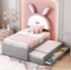 Flieks Polsterbett ist ein stilvolles LED Kinderbett in der Größe 90 x 200 cm, das mit praktischen Schubladen und einem ausziehbaren Bett (90 x 190 cm) ausgestattet ist. Der Bezug aus Samt und das stabile MDF-Material sorgen für eine ansprechende Optik und Langlebigkeit. Mit einer maximalen Belastbarkeit von 120 kg und einem Nettogewicht von 39 kg ist es ideal für Kinderzimmer.