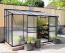 Das Vitavia Anlehngewächshaus Ida bietet mit einer Grundfläche von ca. 6,5 m² ausreichend Platz für Ihre Pflanzen. Das Gewächshaus besteht aus pulverbeschichteten Aluminiumprofilen und UV-stabilisierten Hohlkammerplatten. Mit einer Höhe von 2,22 m am First und einer schicken schwarzen Farbe ist es nicht nur funktional, sondern auch optisch ansprechend.