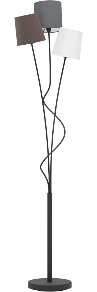 Die Eglo 94995 Stehleuchte Maronda überzeugt durch ihr modernes Design und die harmonische Kombination aus schwarzem Metall und drei Textil-Schirmen in Anthrazit, Weiß und Braun. Mit einer Höhe von 152 cm und einer Länge von 27,5 cm ist sie ideal für Wohnzimmer, Schlafzimmer oder Esszimmer. Der praktische Fußtrittschalter ermöglicht ein bequemes Ein- und Ausschalten. Bitte beachten Sie, dass die Leuchtmittel nicht im Lieferumfang enthalten sind.