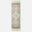 Handgewebter Kelim Teppichläufer Tenali in Hellblau mit geometrischem Muster. Der Läufer misst 66x200 cm und hat eine Höhe von 20 mm. Hergestellt aus 75 % Wolle und 25 % Baumwolle, bietet er eine harmonische Kombination aus Haltbarkeit und Weichheit. Ideal für stark beanspruchte Bereiche wie Flur oder Diele, verleiht er jedem Raum ein wohnliches Flair.
