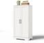 Moderner Ulife Stauraumschrank mit LED-Sensorlicht, ideal für kleine Räume. Der große 2-türige Aufbewahrungsschrank bietet verstellbare Regalböden und Türablagen. Mit den Abmessungen von 120 x 60 x 40 cm und dem hochwertigen MDF-Material in Weiß fügt er sich perfekt in ein europäisch-minimalistisches Ambiente ein.