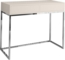 Moderner Schminktisch Lortie 80 in Kaschmir mit einem eleganten Chrom-Metallgestell. Dieser kompakte Schminktisch bietet mit einer Breite von 80 cm und einer Tiefe von 35 cm praktischen Stauraum in zwei geräumigen Schubladen (Höhe: 11,5 cm) für Kosmetik und Accessoires. Die 18 mm starke Tischplatte ist pflegeleicht und widerstandsfähig. Ideal für kleine Räume, überzeugt der Tisch durch sein modernes Design und die einfache Selbstmontage.