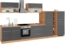 Die KOCHSTATION Küchenzeile KS-Wien bietet mit einer Breite von 410 cm großzügigen Stauraum und überzeugt durch ihr modernes Dekor. Ausgestattet mit einem Klapphängeschrank, Vorratsschrank, Regal und Hängeschränken, bietet sie optimale Möglichkeiten zur Unterbringung Ihrer Küchenutensilien. Die durchgehende Arbeitsplatte bietet ausreichend Platz für Kleingeräte. Die hochwertigen MDF-Fronten sorgen für Langlebigkeit und ansprechendes Design.