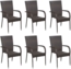 Dieses 6er-Set Gartenstühle mit Armlehnen in Braun ist ideal für Ihren Garten, Balkon oder Ihre Terrasse. Die Stühle sind aus witterungsbeständigem PE-Rattan gefertigt und bieten dank des pulverbeschichteten Stahlrahmens Stabilität. Mit einer Breite von ca. 55,5 cm, einer Höhe von ca. 95 cm und einer Tiefe von ca. 53,5 cm gewährleisten sie hohen Sitzkomfort. Die Stühle sind stapelbar und somit platzsparend verstaut.