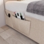 Praktisches Polsterbett 90x200 cm aus Leinen mit Stauraum und integrierten USB-/Type-C-Anschlüssen. Der beige/naturfarbene Leinenbezug sorgt für eine warme Atmosphäre, während das hydraulische Stauraumsystem und der vollflächige Massivholz-Bettboden hohen Komfort und Stabilität bieten. Mit einer maximalen Benutzerbelastung von 330 lb (ca. 150 kg) ist das Bett sowohl funktional als auch langlebig.