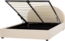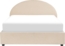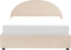 Minimalistisches Doppelbett mit halbrundem Kopfteil, hochklappbarem Lattenrost und praktischem Stauraum