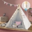 In dem geräumigen Kindertipi von Spielwerk® werden Kinderträume wahr. Das große Kinderzelt bietet Platz für 2 bis 3 Kinder, ist vielfältig in der Kombination mit anderen Spielzeugen und setzt ein optisches Highlight in jedem Kinderzimmer.
