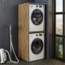 Eine platzsparende Lösung für Ihre Waschmaschine und Ihren Trockner bietet der Roomart Waschmaschinenumbauschrank. Mit einer optimalen Höhe von 176,2 cm erleichtert er die Wäschearbeit erheblich. Der Schrank ist aus E1 melaminharzbeschichteten Platten gefertigt und bis zu 130 kg belastbar. Die Wandbefestigung und höhenverstellbaren Füße sorgen für Stabilität und minimieren Vibrationen. Pflegeleicht und feuchtigkeitsbeständig, ist er einfach zu reinigen.
