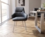 Esszimmerstuhl Zelia-Flex mit Armlehnen Echt-Leder Schwarz 4-Fuß konisch Edelstahl Taschenfederkern