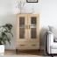Das Highboard Sonoma-Eiche kombiniert modernes Design mit Funktionalität. Hergestellt aus hochwertigem Holzwerkstoff, bietet es Stabilität und Feuchtigkeitsbeständigkeit. Die Metallbeine sorgen für eine ansprechende Optik und zusätzliche Stabilität. Mit großzügigem Stauraum und praktischen Glastüren schützt es Ihre Gegenstände vor Staub, während die robuste Oberplatte ideal für Dekorationen ist. Eine Wandhalterung ist im Lieferumfang enthalten, um das Umkippen zu verhindern.