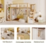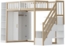Multifunktionales Hochbett 90x200 cm für Kinder mit integriertem Stauraum. Dieses durchdachte Hochbett bietet einen gemütlichen Schlafplatz in luftiger Höhe und überzeugt mit einem großzügigen Kleiderschrank sowie einer Regal-Bibliothek. Die sichere Treppe mit verstecktem Stauraum sorgt für zusätzlichen Platz und Sicherheit. Hergestellt aus massivem Kiefernholz und hochwertigen MDF-Platten, erfüllt es höchste Sicherheitsstandards.