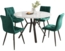 Runde Esstischgruppe bestehend aus einem eleganten Esstisch mit einer Tischplatte aus MDF und edlem Marmorstrukturfurnier sowie vier bequemen Samtstühlen in grün. Die Tischbeine aus schwarzem Metall bieten Stabilität und ein modernes Design. Ergonomische Stühle unterstützen Rücken und Taille, während das geschwungene Fußdesign die Ästhetik und Stabilität erhöht. Ideal für moderne Wohnräume, um eine stilvolle und komfortable Essumgebung zu schaffen.