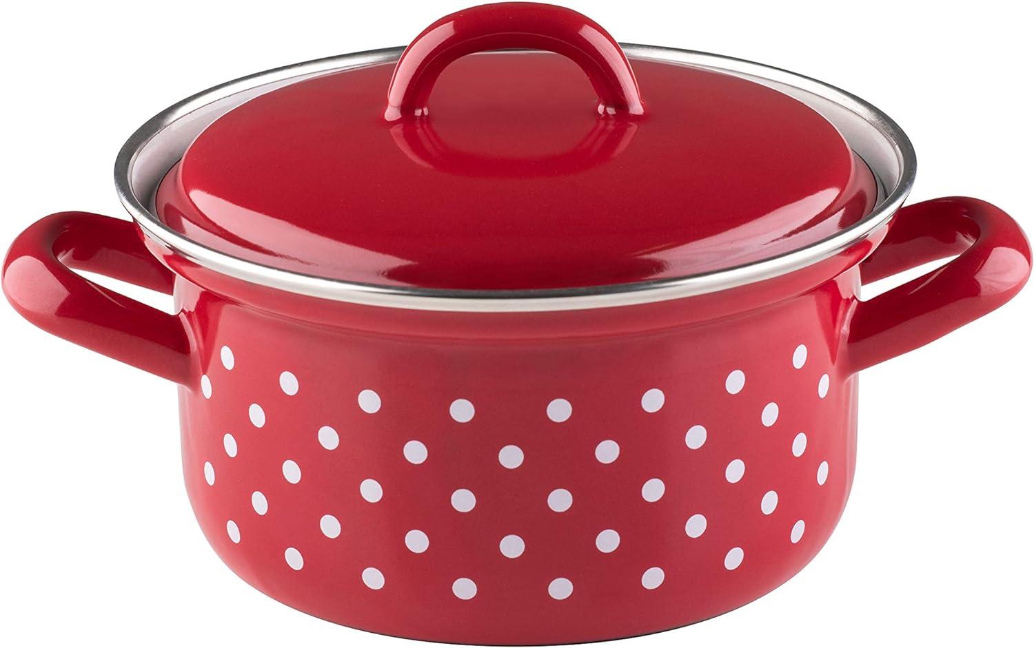 - 1x Riess Pünktchen Kasserolle mit Deckel (Durchmesser 14 cm, Inhalt 0,75 Liter)