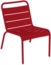 Der Luxembourg Lounge-Stuhl Chili von Fermob vereint zeitloses Design mit Funktionalität. Hergestellt aus leichtem Aluminiumrohrrahmen und gebogenen Aluminiumlatten für Sitz und Rückenlehne, bietet dieser Stuhl sowohl Komfort als auch Stil. Mit einer Stapelhöhe von 101 cm und einer 6-fachen Stapelbarkeit ist er ideal für den Außenbereich und sorgt für platzsparende Aufbewahrung. Zudem ist er UV-beständig und mit einem IPAC9 Korrosionsschutzindex ausgestattet.
