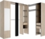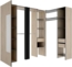 Der Eckkleiderschrank BERTRAND bietet Ihnen eine stilvolle und praktische Lösung zur Aufbewahrung Ihrer Kleidung. Mit einer Breite von 231,5 cm, einer Höhe von 205 cm und einer Tiefe von 141 cm ist er ideal für Ecken geeignet. Der Schrank verfügt über 3 Wäscheschränke, 3 Kleiderstangen und 3 Schubladen, die Ihnen viel Stauraum bieten. Der integrierte Spiegel und der elegante Vorhang in Grau runden das Design ab.