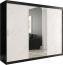 Kleiderschrank Kamoga T1 250 in Schwarz und Marmor Weiß mit goldenen Metallgriffen bietet viel Stauraum und eine elegante Optik. Mit einer Breite von 250 cm, einer Höhe von 200 cm und einer Tiefe von 62 cm ist er ideal für Ihr Schlafzimmer. Der Schrank verfügt über zwei Kleiderstangen und einen praktischen Frontspiegel.